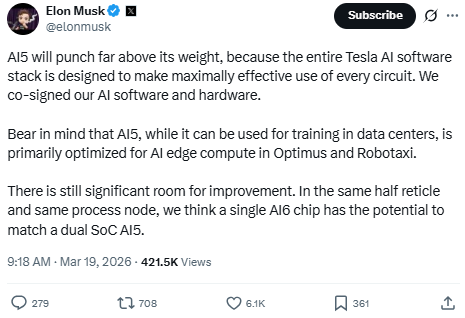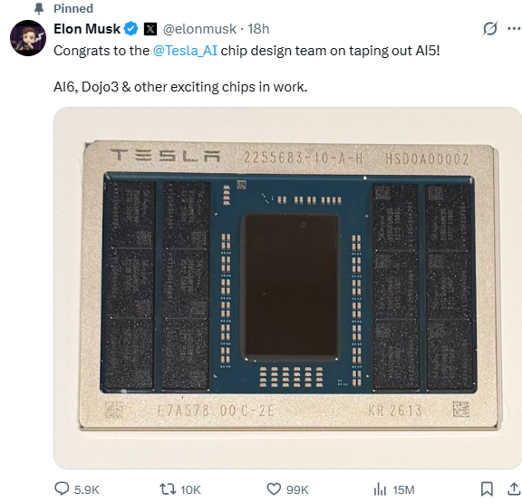 馬斯克宣布,公司芯片設(shè)計團隊成功完成了下一代AI5